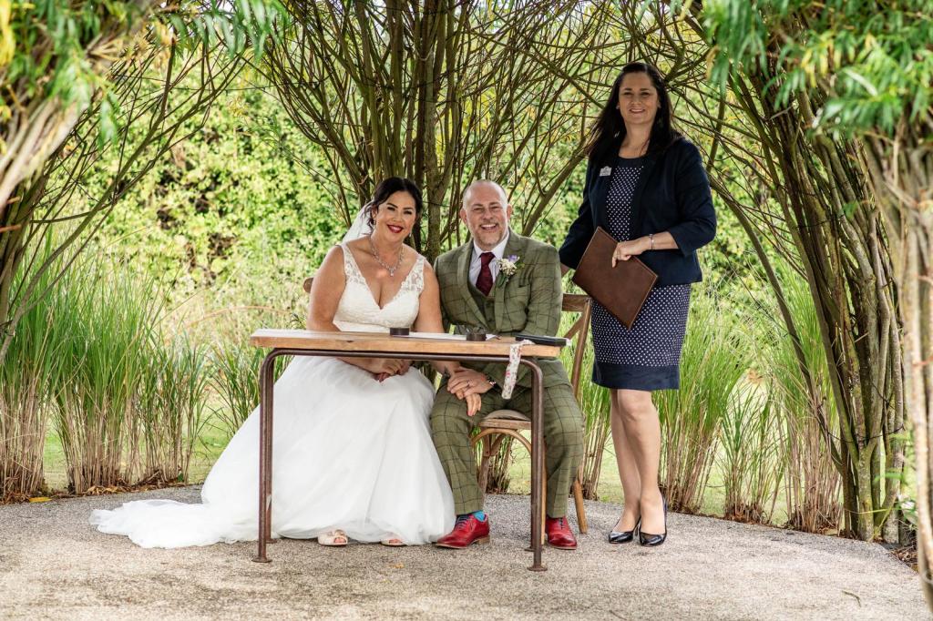 Celebrant with the happy couple.