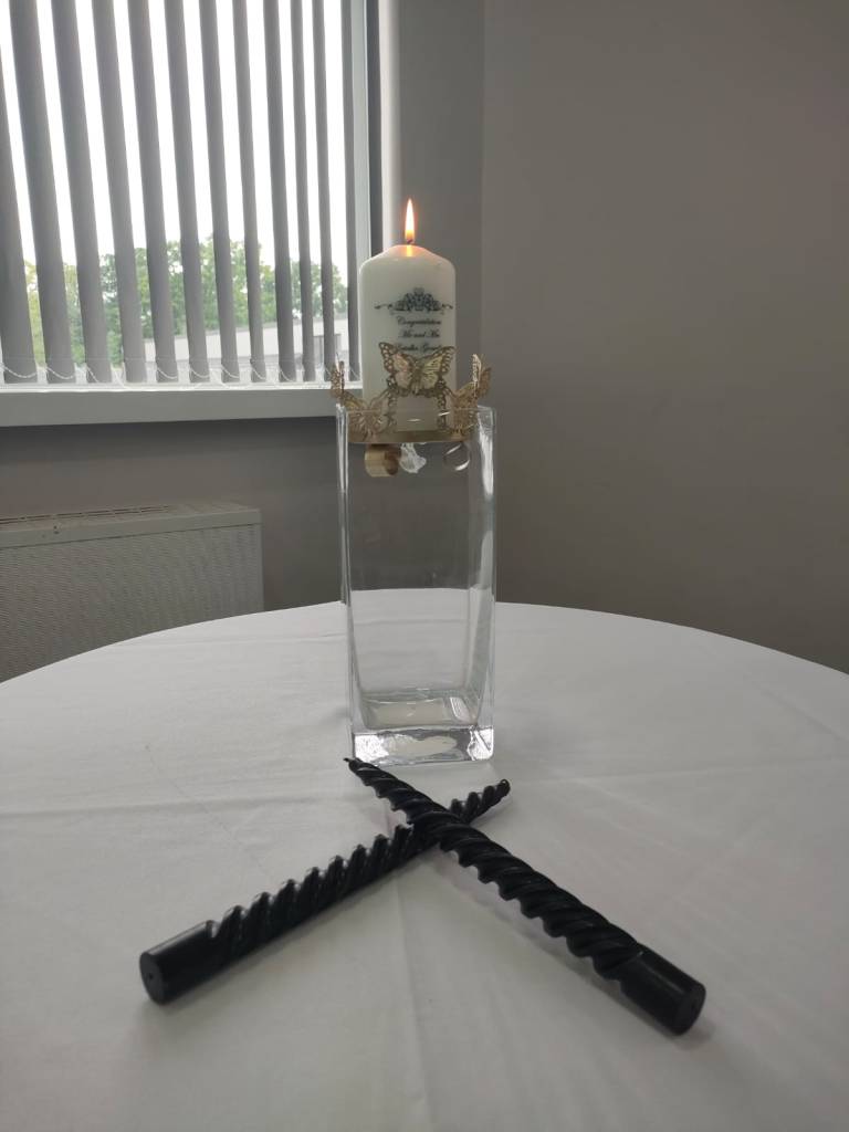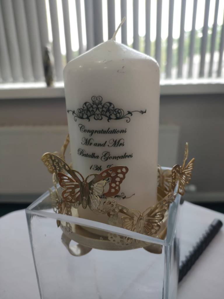 Demi and Claudio approached me two months before their ceremony to ask if I could conduct their wedding ceremony as they had to move their original registrar booking. They registered the marriage before the special day and we created a beautiful unity candle ceremony to symbolise this couple coming together in marriage.
