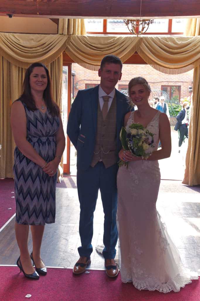 Shona and Ciaran had lots of brilliant ideas for their bespoke ceremony. They chose the Lovely Leaf package and added a reading and a sand ceremony to the service. The sand ceremony included their parents which added a real family feel to the wedding day. There were some tears but plenty of giggles during the ceremony and a surprise for the groom when his best man ‘forgot’ the rings. Don’t worry as Sammy the dog saved the day! I thoroughly enjoyed planning this ceremony which had to be postponed for a year but ended up being such a wonderful day!